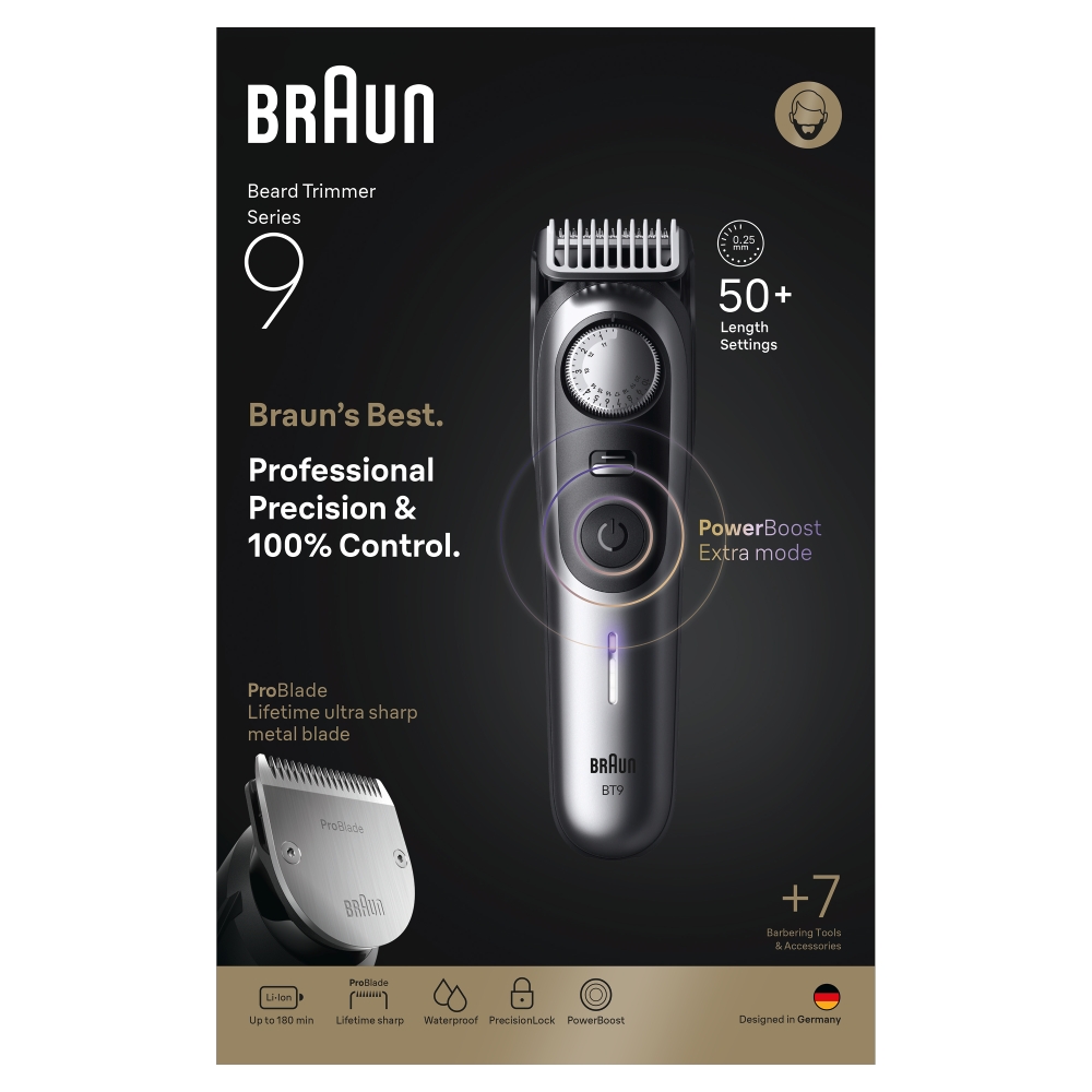 Braun Series 9 BT9520 Trymer do zarostu + 7 przyborów barbera, 50 ustawień