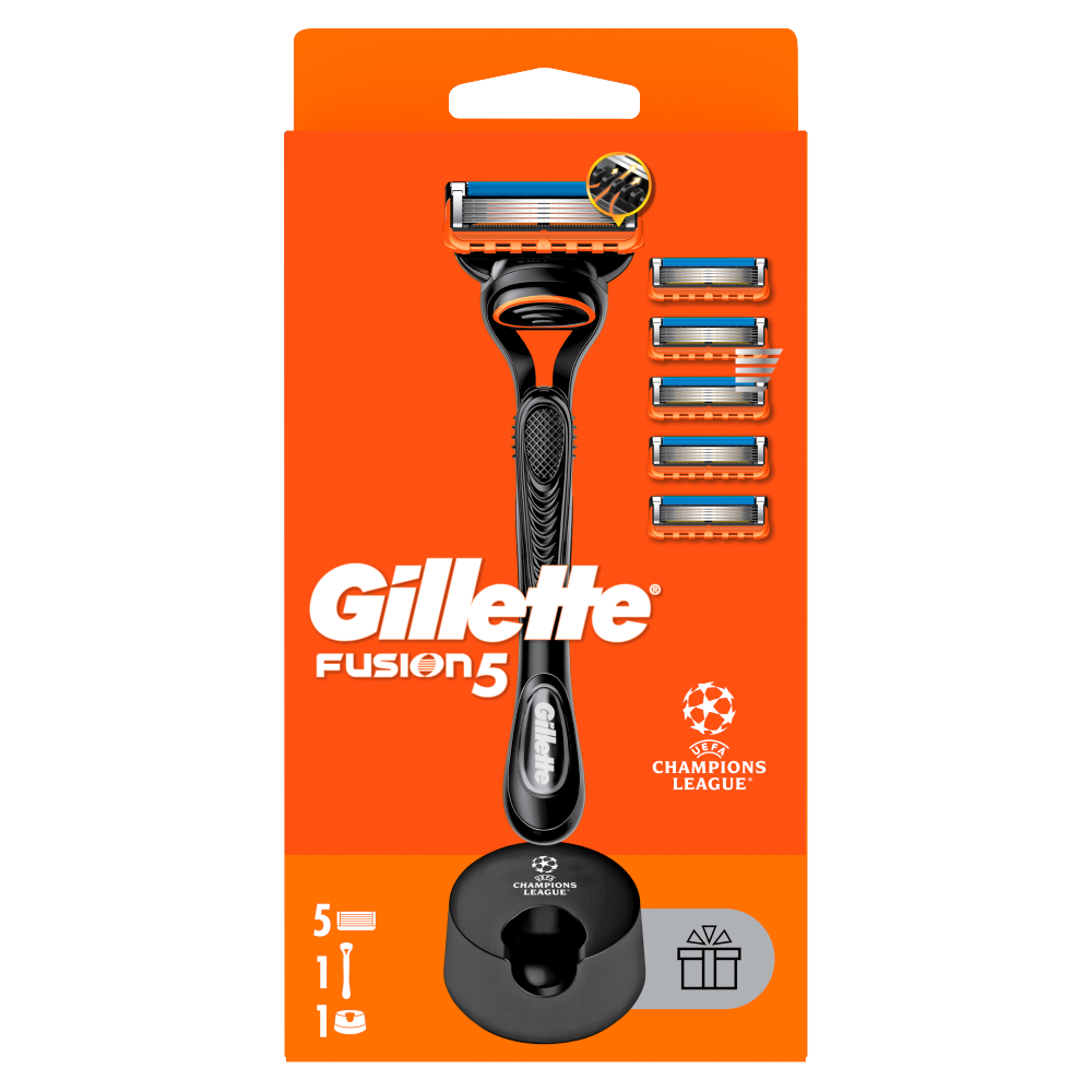 Gillette Fusion5 Maszynka do golenia dla mężczyzn + 5 ostrzy wymiennych + stojak