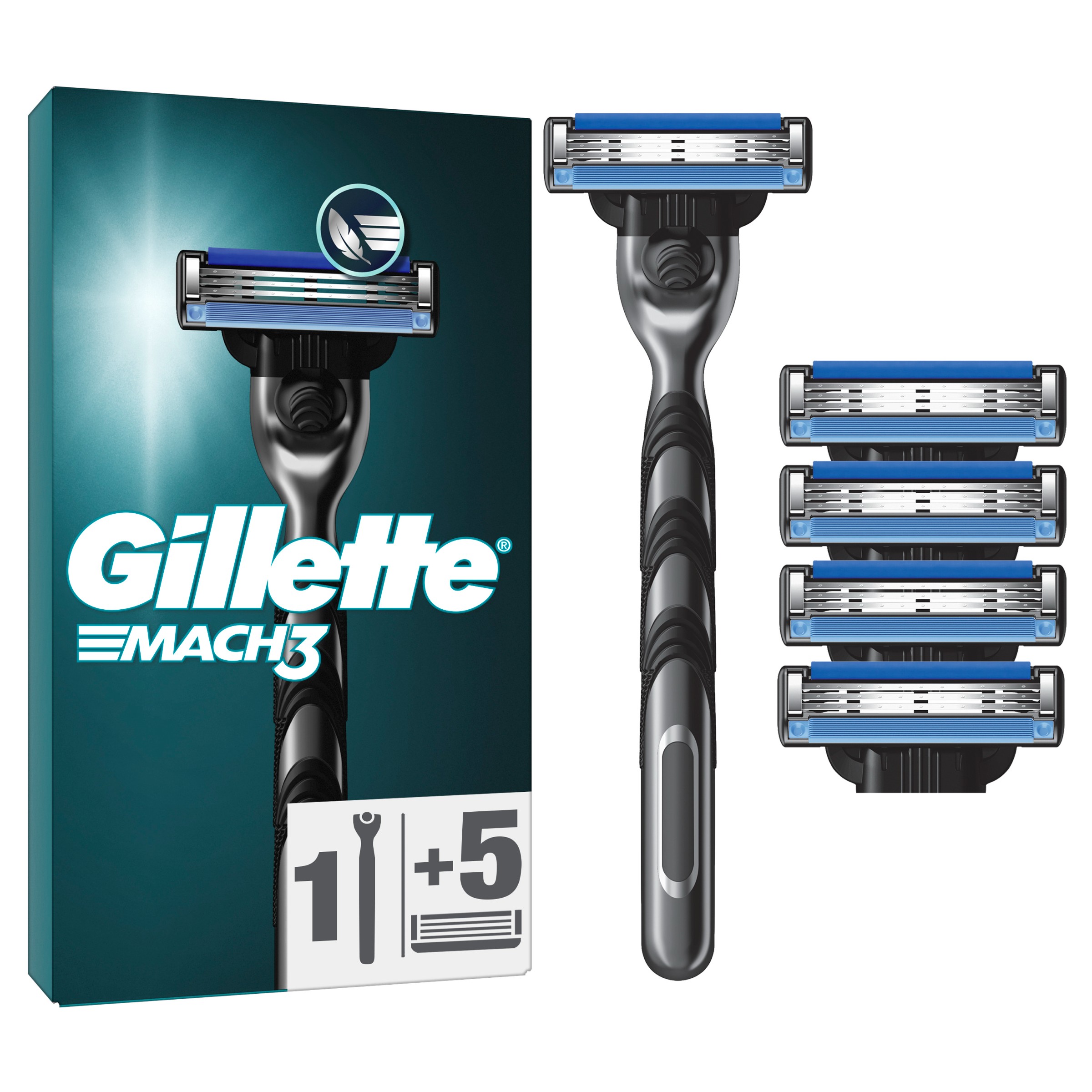 Gillette Mach3 Maszynka do golenia dla mężczyzn + 5x ostrze wymienne