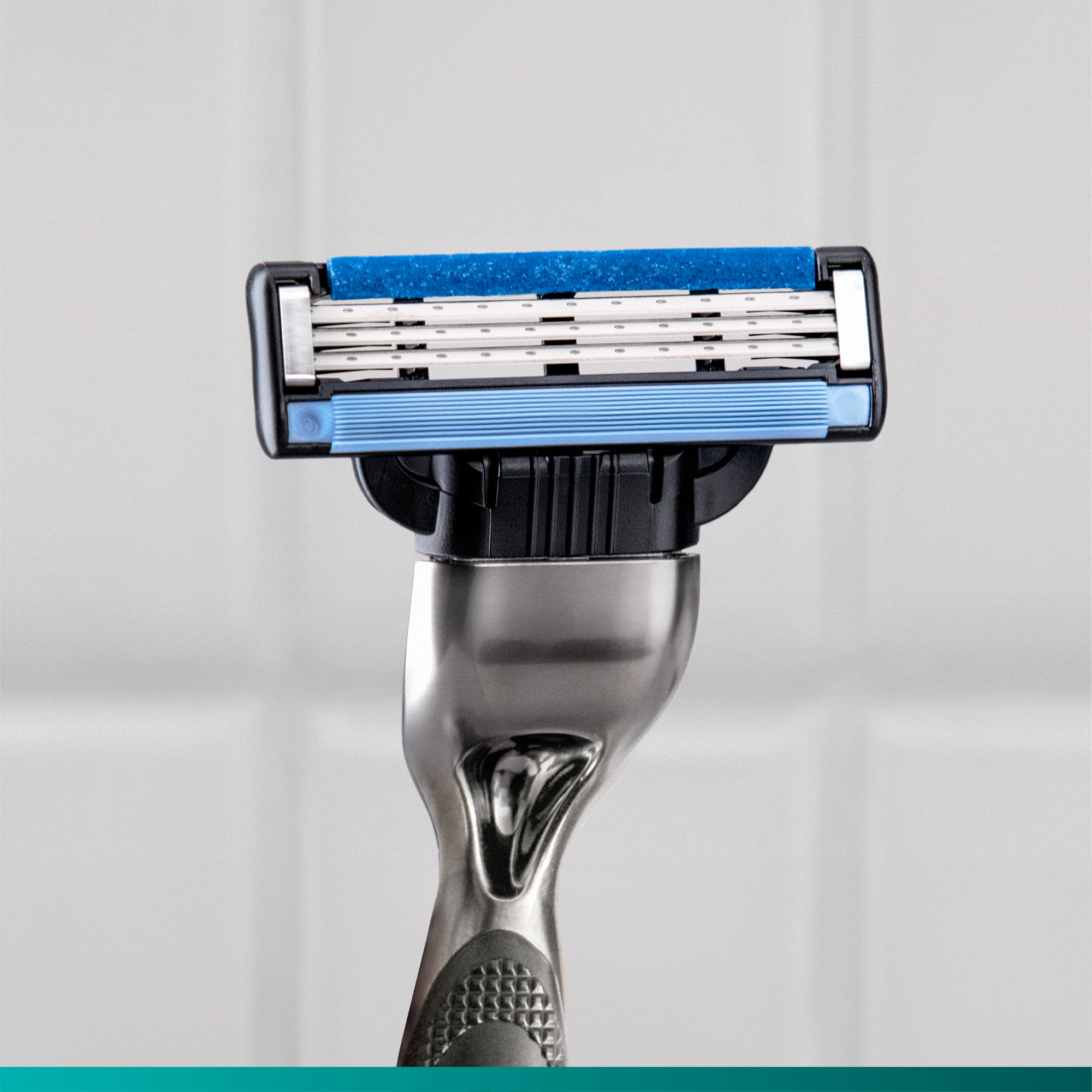 Mniej podrażnień po goleniu. Maszynka do golenia z 3 ostrzami i udoskonalonym paskiem nawilżającym dla gładszego golenia* (* w porównaniu z poprzednią maszynką Mach3)