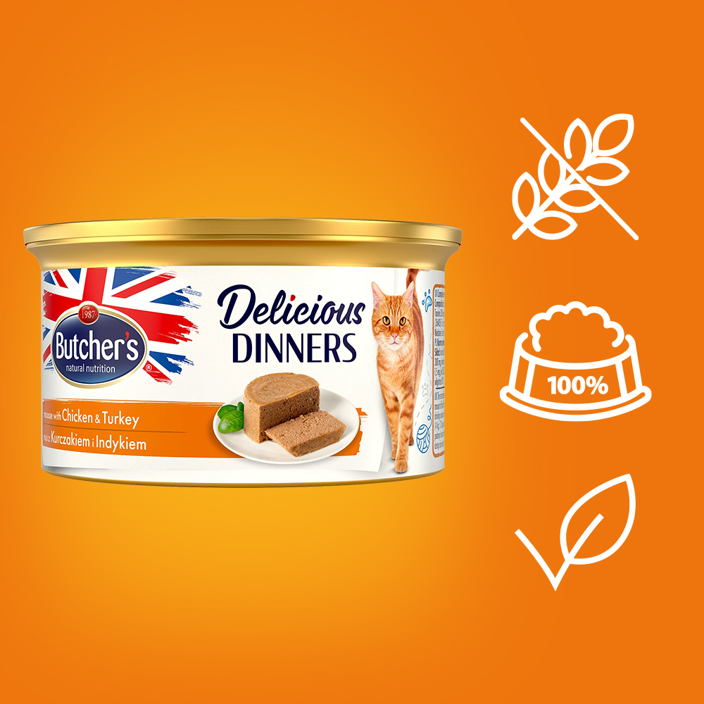 Butcher’s Delicious Dinners, Karma dla kota, z kurczakiem i indykiem, mus, 85g
