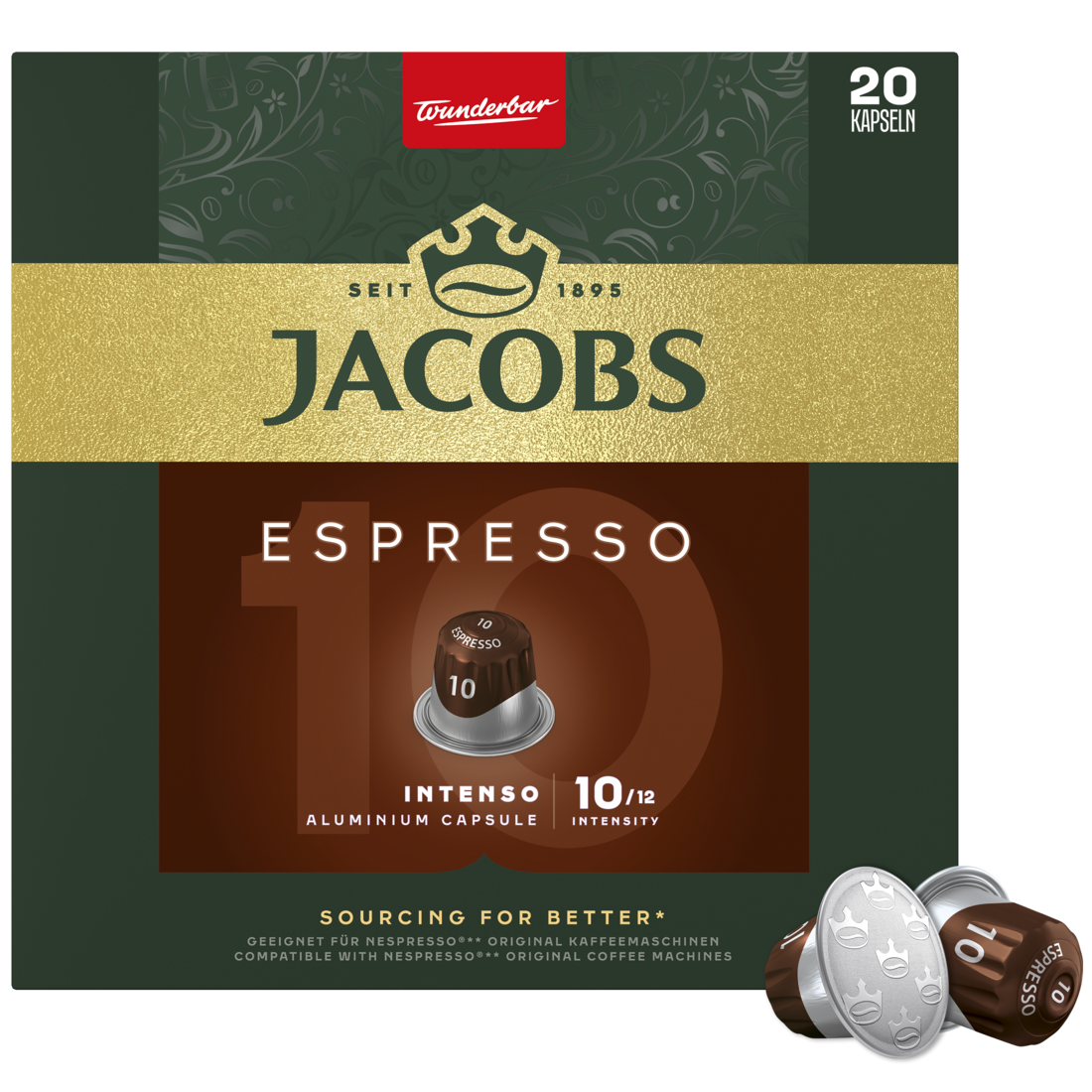 Kapsułki aluminiowe Jacobs Espresso Intenso 20 sztuk, Intensywność 10, kompatybilne z ekspresami Nespresso®*