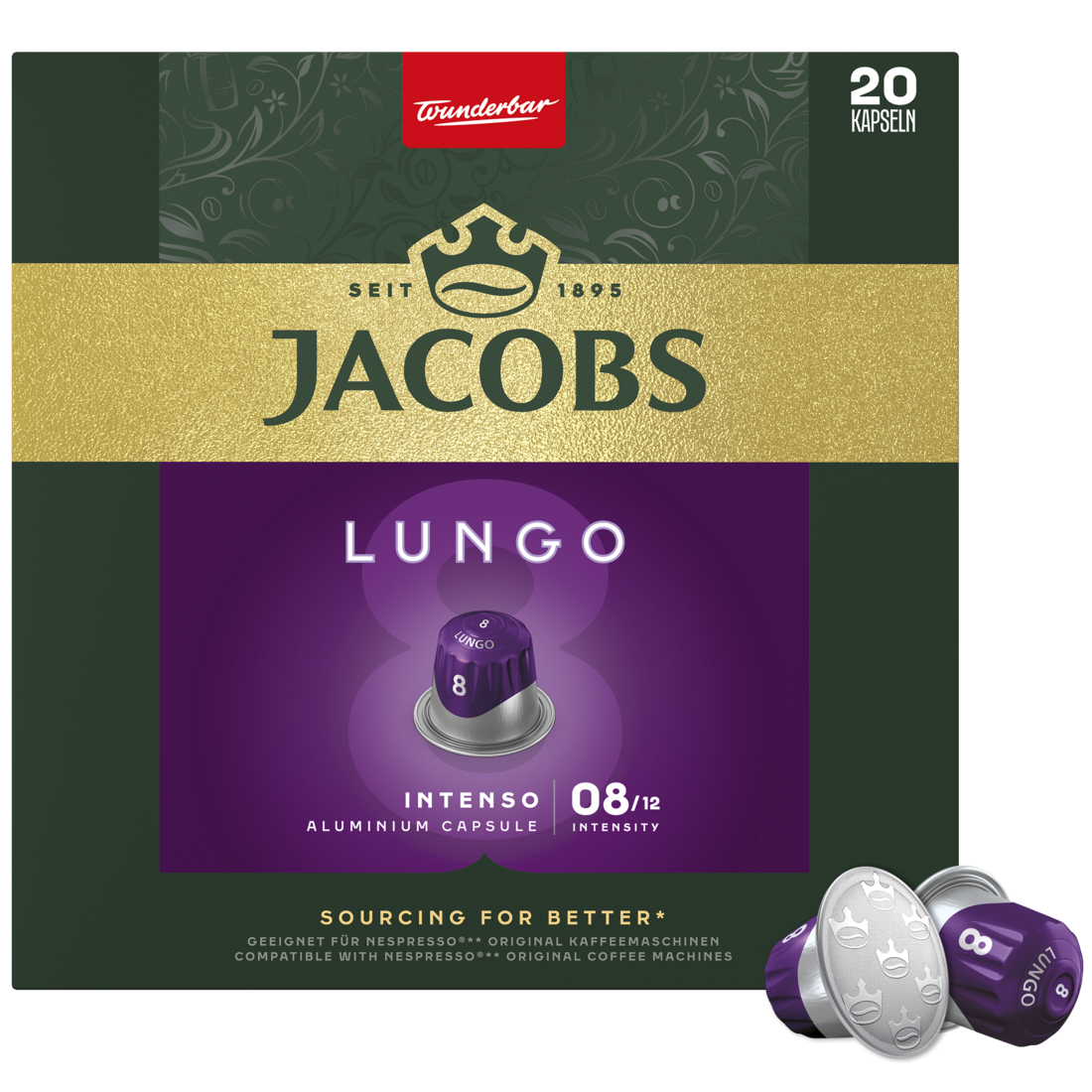 Kapsułki aluminiowe Jacobs Lungo Intenso 20 sztuk, Intensywność 8, kompatybilne z ekspresami Nespresso®*
