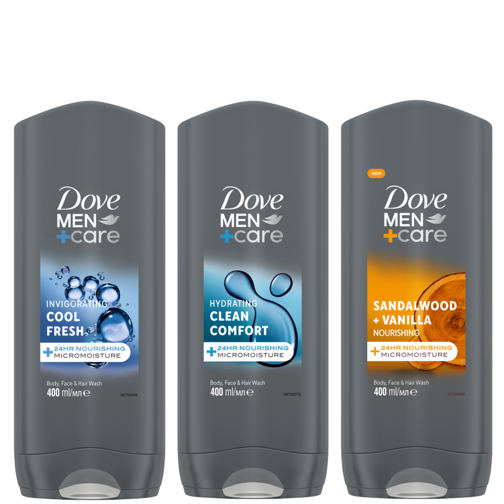 Żele pod prysznic 400 ml Dove Men+Care: 1x Sandalwood + Vanilla 1x Cool Fresh 1x Clean Comfort