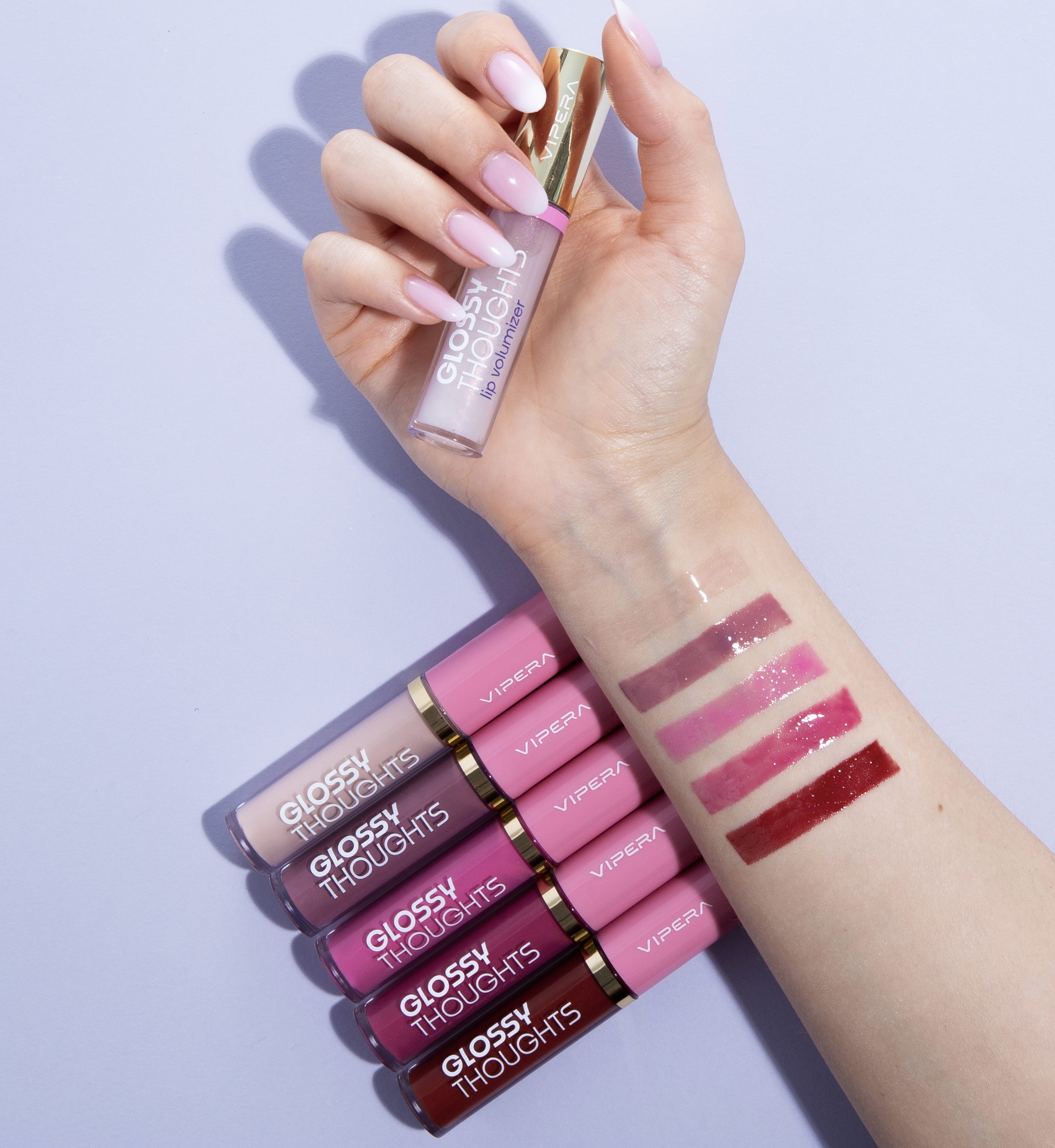 Glossy Thoughts to kolekcja błyszczyków łącząca subtelny kolor z zaawansowaną pielęgnacją ust. Formuła oparta o składniki aktywne działa wygładzająco, nawilżająco i regenerująco.