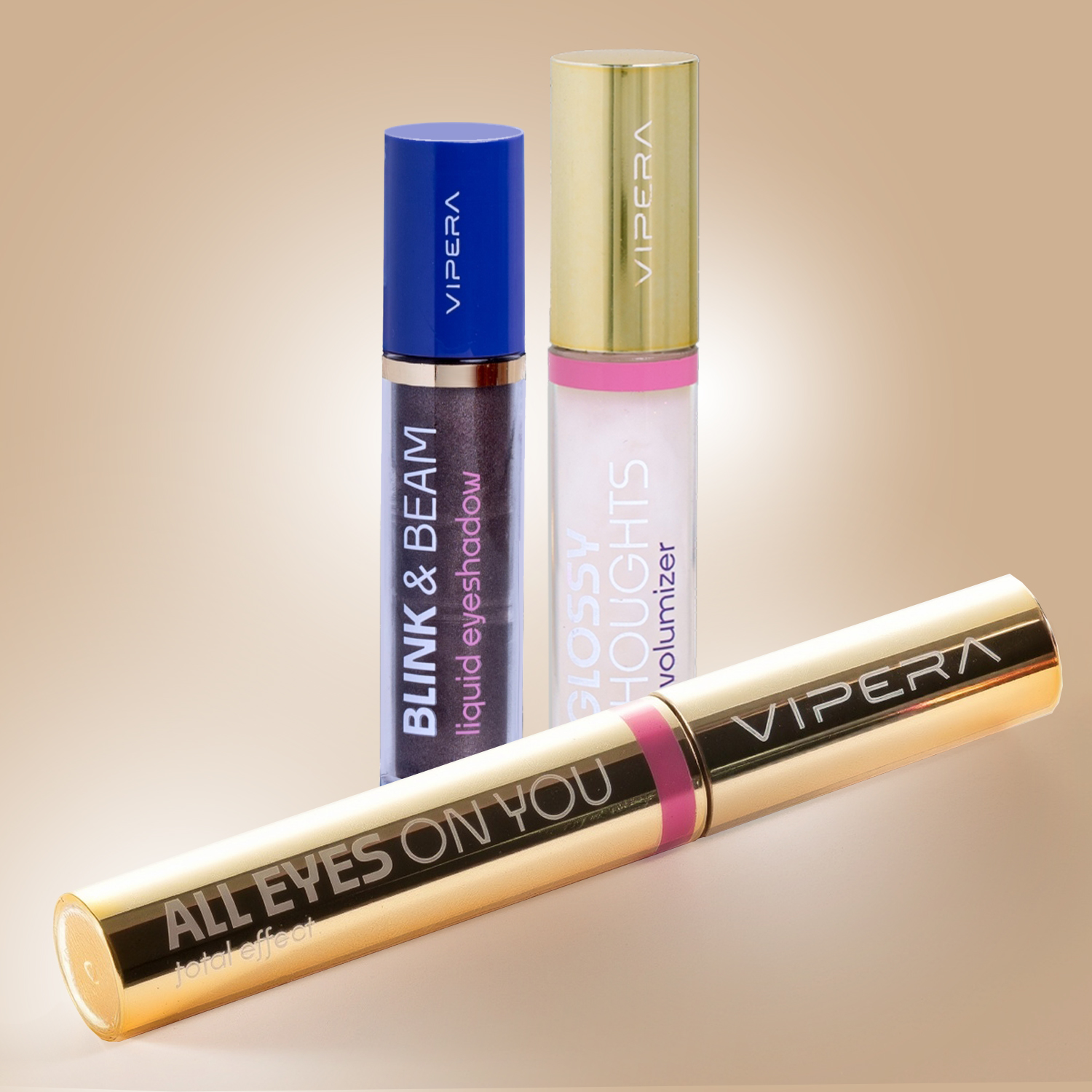 Zestaw VIPERA Maskara ALL EYES ON YOU 01 Black + Cień do powiek BLINK & BEAM 01 Espresso Dust + GRATIS Błyszczyk lip volumizer 00 transparent