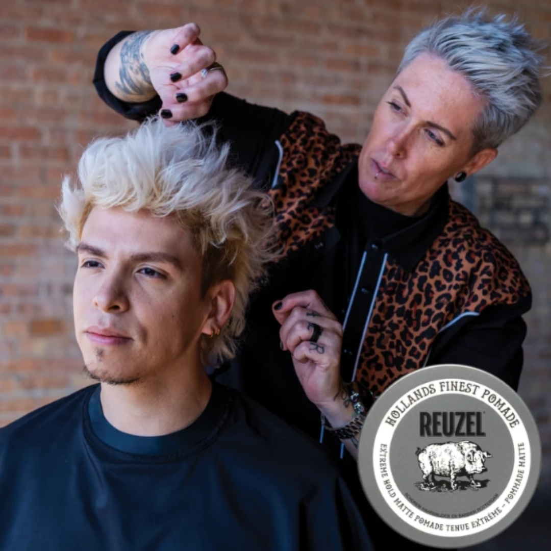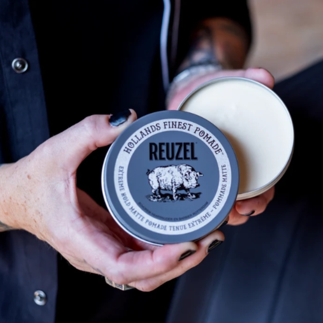 Reuzel Extreme Hold Matte Pomade to włóknista pomada o ekstremalnym chwycie i matowym wykończeniu. Zapewnia maksymalną kontrolę nad fryzurą, jednocześnie nadając jej teksturę i objętość. Dzięki bazie wodnej łatwo się zmywa, a lekką konsystencję uzupełnia delikatny, słodki zapach jabłka.