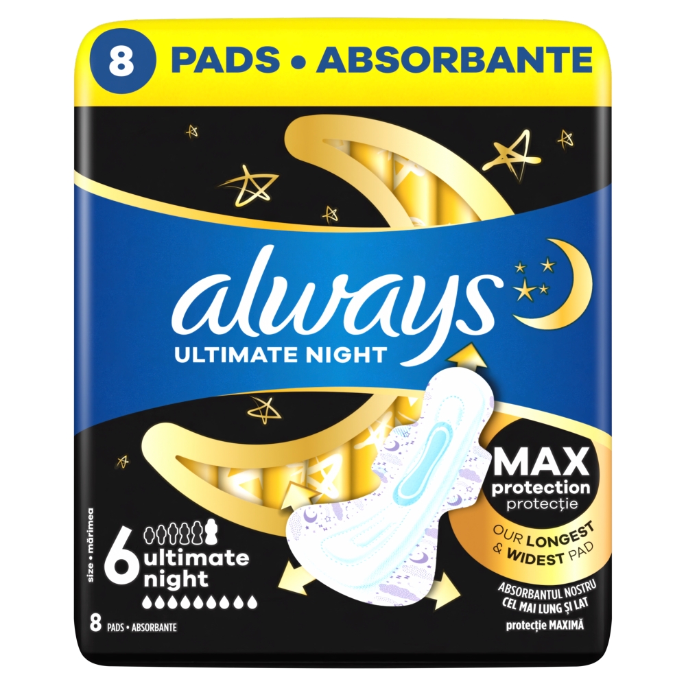 Always Ultimate Night Podpaski ze skrzydełkami, rozmiar 6, 8 sztuk