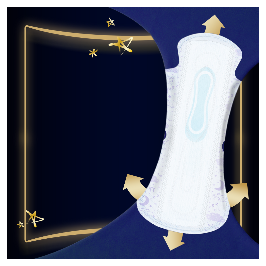 O 60% większy tył niż w podpasce Ultra Normal (rozmiar 1) dla zapewnienia dodatkowej ochrony na noc