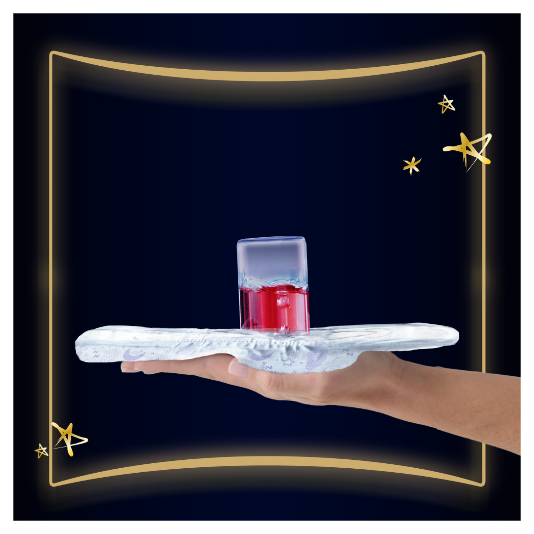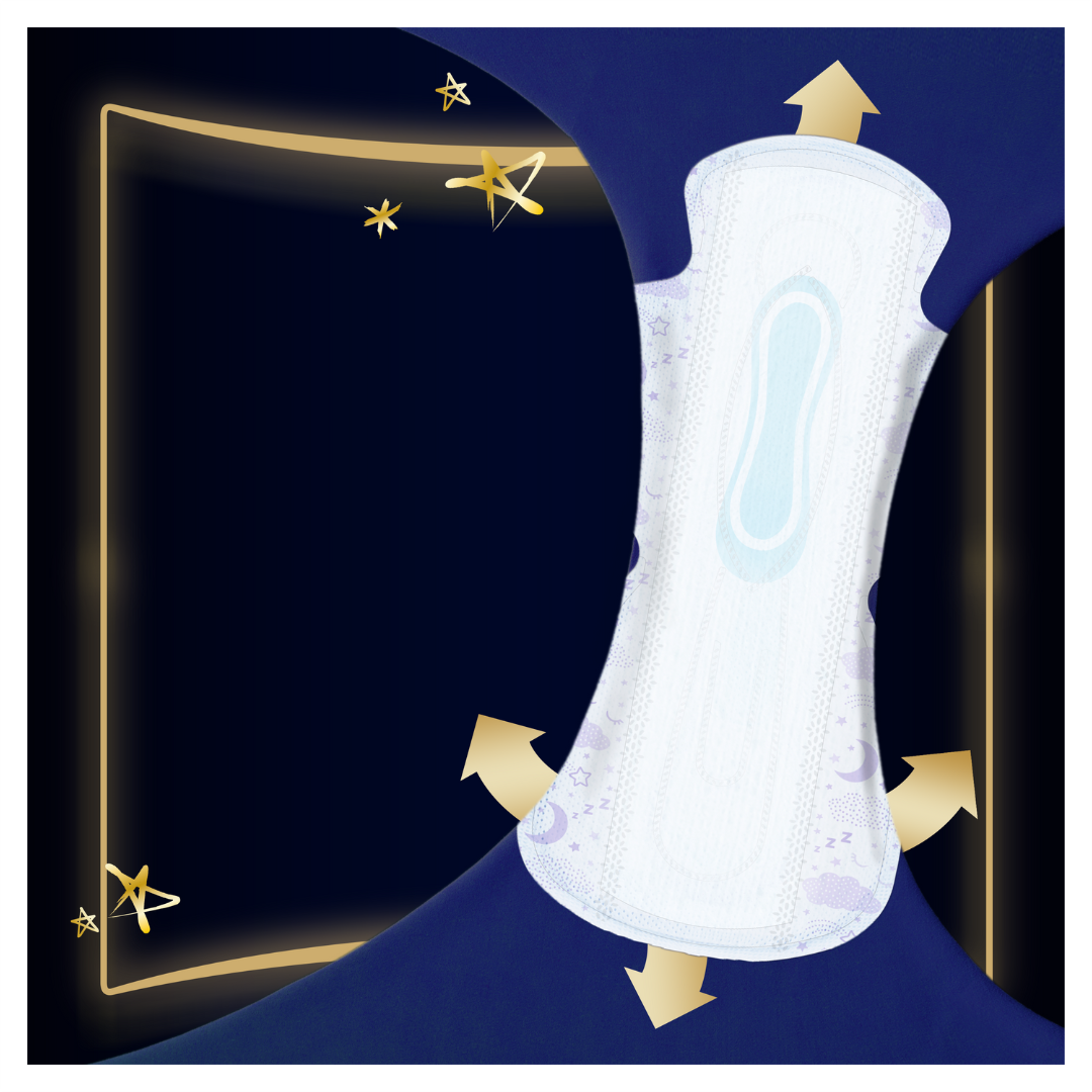 O 9% większy przód i o 85% większy tył niż w podpasce Always Ultra Normal (rozmiar 1) zapewniają ochronę na noc z każdej strony