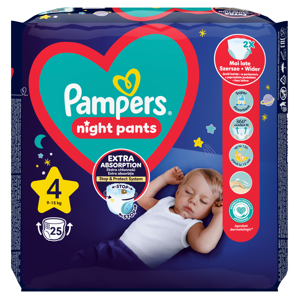 Pampers Night Pants Pieluchomajtki rozmiar 4, 9-15 kg, 25 sztuk