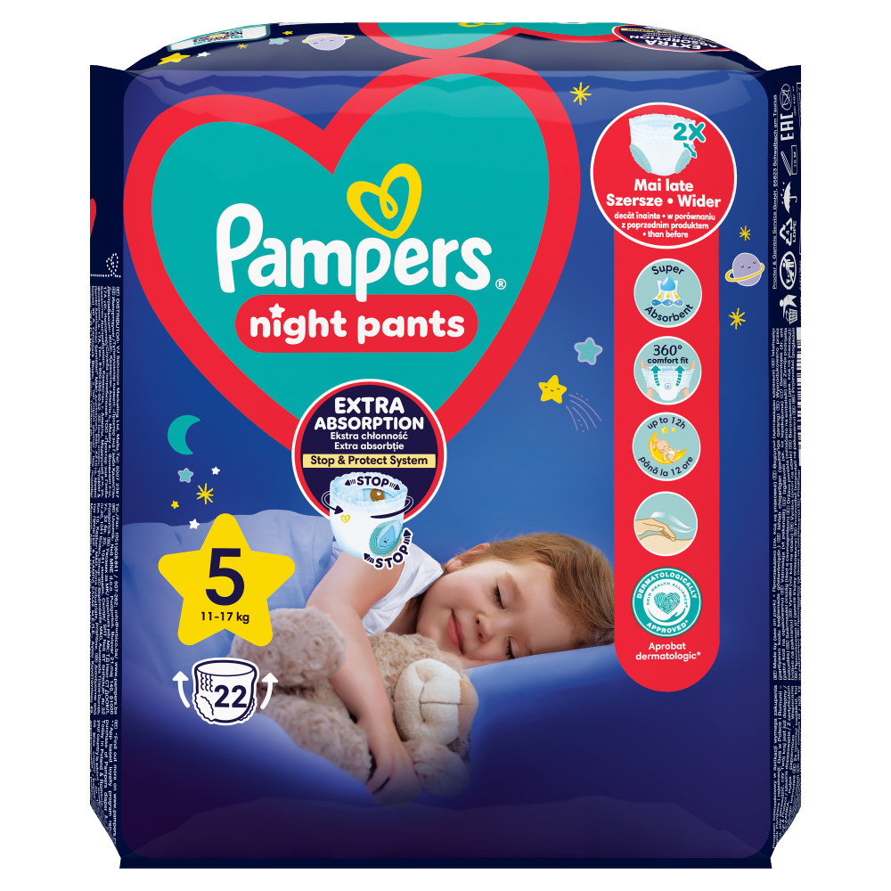 Pampers Night Pants Pieluchomajtki rozmiar 5, 11-17 kg, 22 sztuki