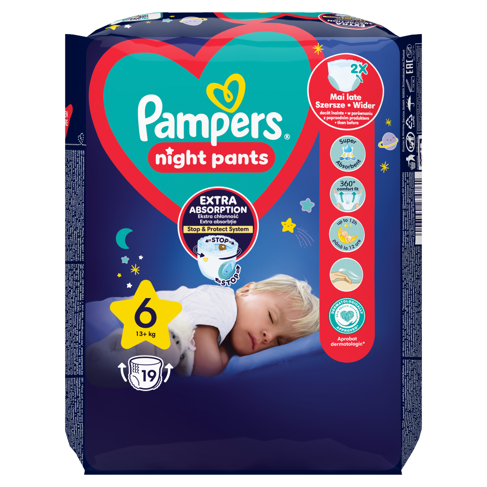 Pampers Night Pants Pieluchomajtki rozmiar 6, 13kg+, 19 sztuk