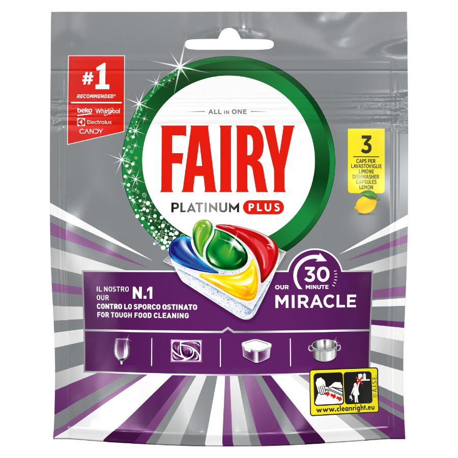 Tabletki do zmywarki Fairy Our 30 Minute Miracle Platinum Plus, próbka 3 kapsułki