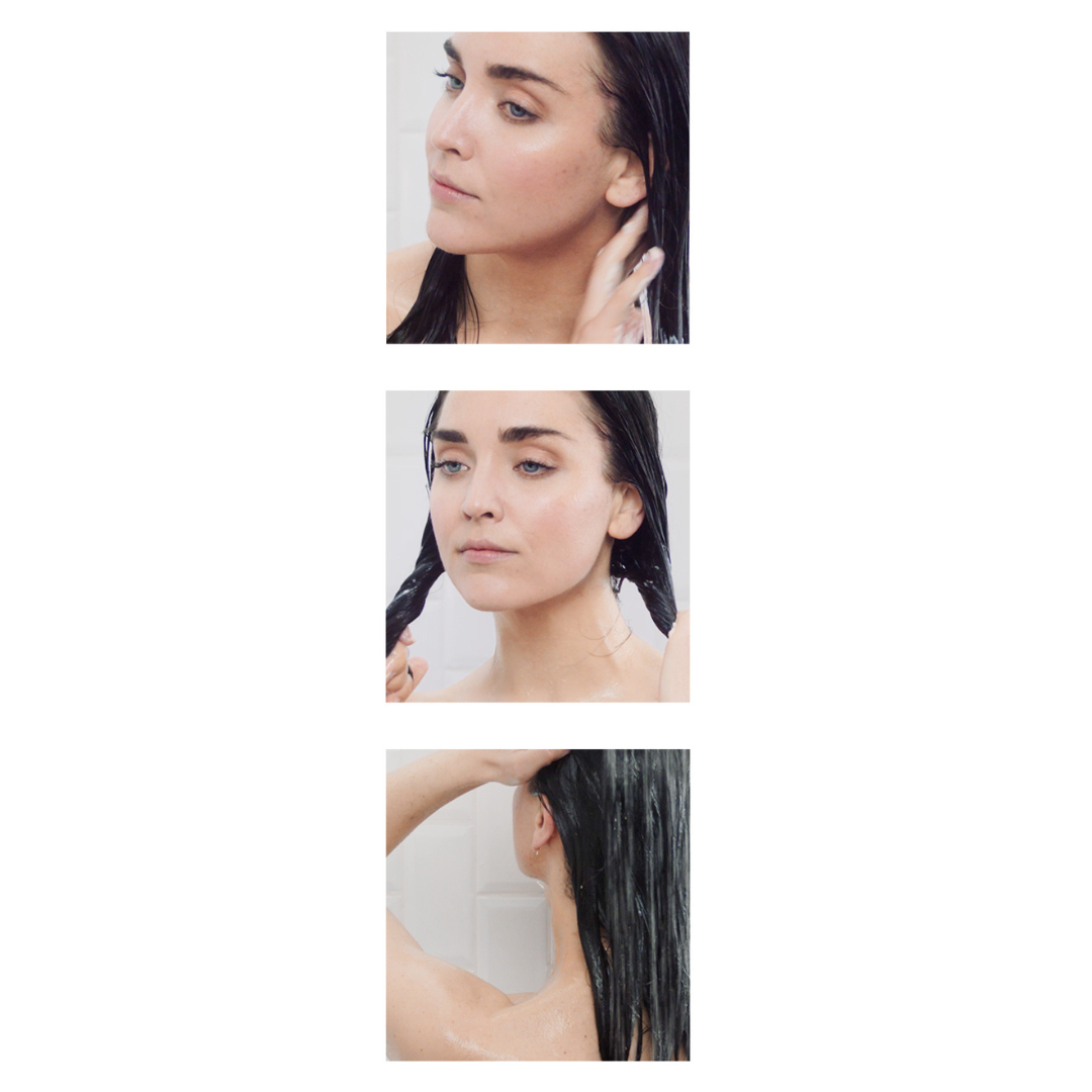 - Rozprowadź równomiernie na długości i końce włosów.