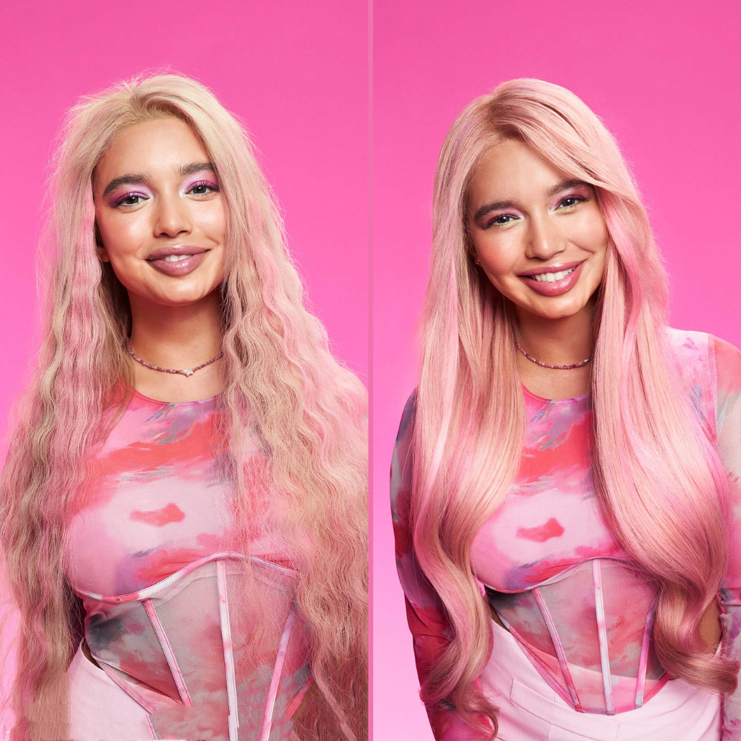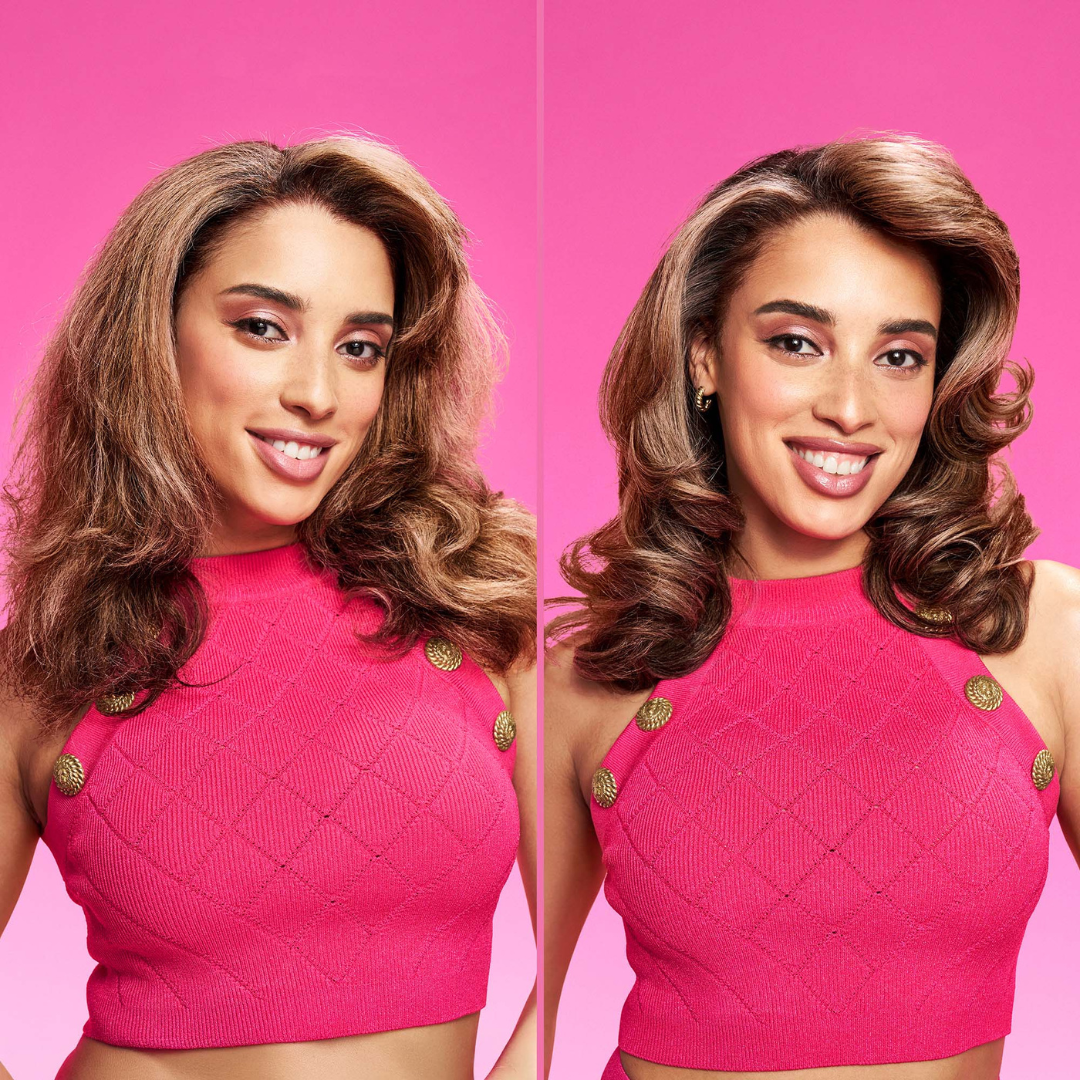 Efekt osiągnięty przy zastosowaniu systemu Instacure Build-A-Bond, składającego się z szamponu, odżywki, płynnej maski i balsamu.